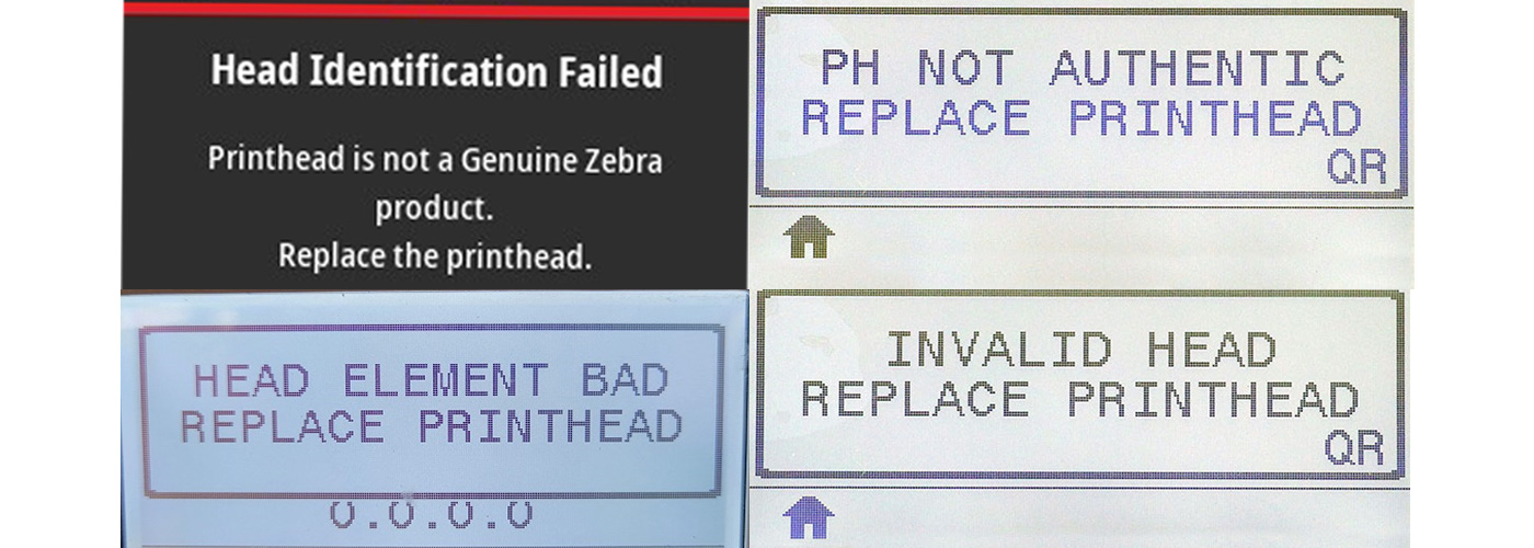 خطای عدم شناسایی هد : در صورتی که این ارور بعد از نصب هد نو مشاهده شود یعنی هد نصب شده برای این مدل دستگاه نبوده و باید با قطعه استاندارد یا اصل جایگزین شود . اما اگر هد نصب شده و بعد از مدتی استفاده این خطا دیده شود ، آیسی کنترل کننده هد بر روی برد اصلی یا آیسی خود هد خراب شده است . خطای عدم شناسایی هد در دستگاه های مختلف زبرا با جملات متفاوتی از این قبیل نشان داده می شود : Invalid Head , PH Not Authentic , Head Element Bad , Head identification Failed